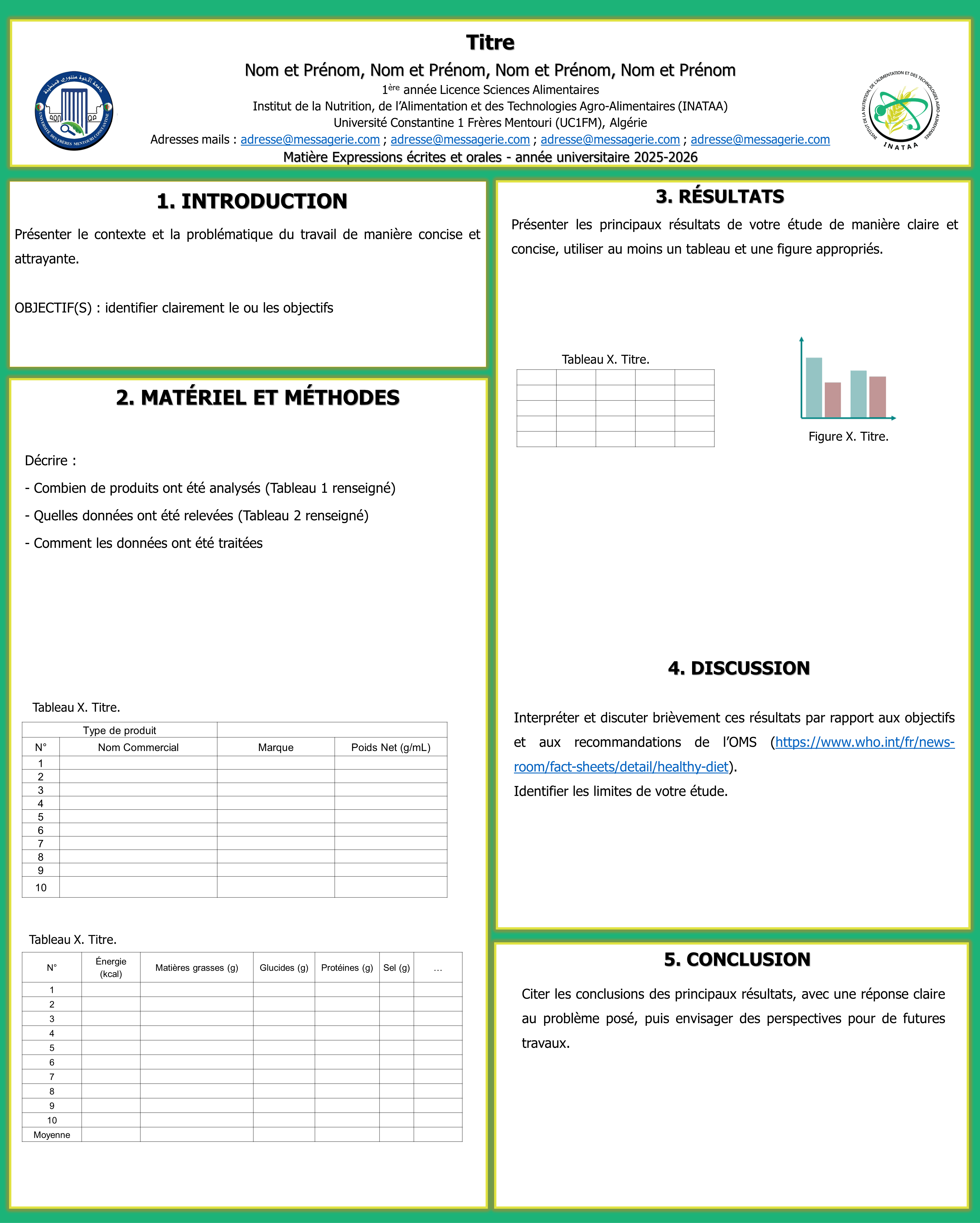 A la fin de ce cours, l'étudiant sera capable de connaitre les méthodes et techniques fondamentales de communication écrite et orale nécessaires pour produire, transmettre et défendre des savoirs et des résultats dans les contextes académiques et professionnels.
