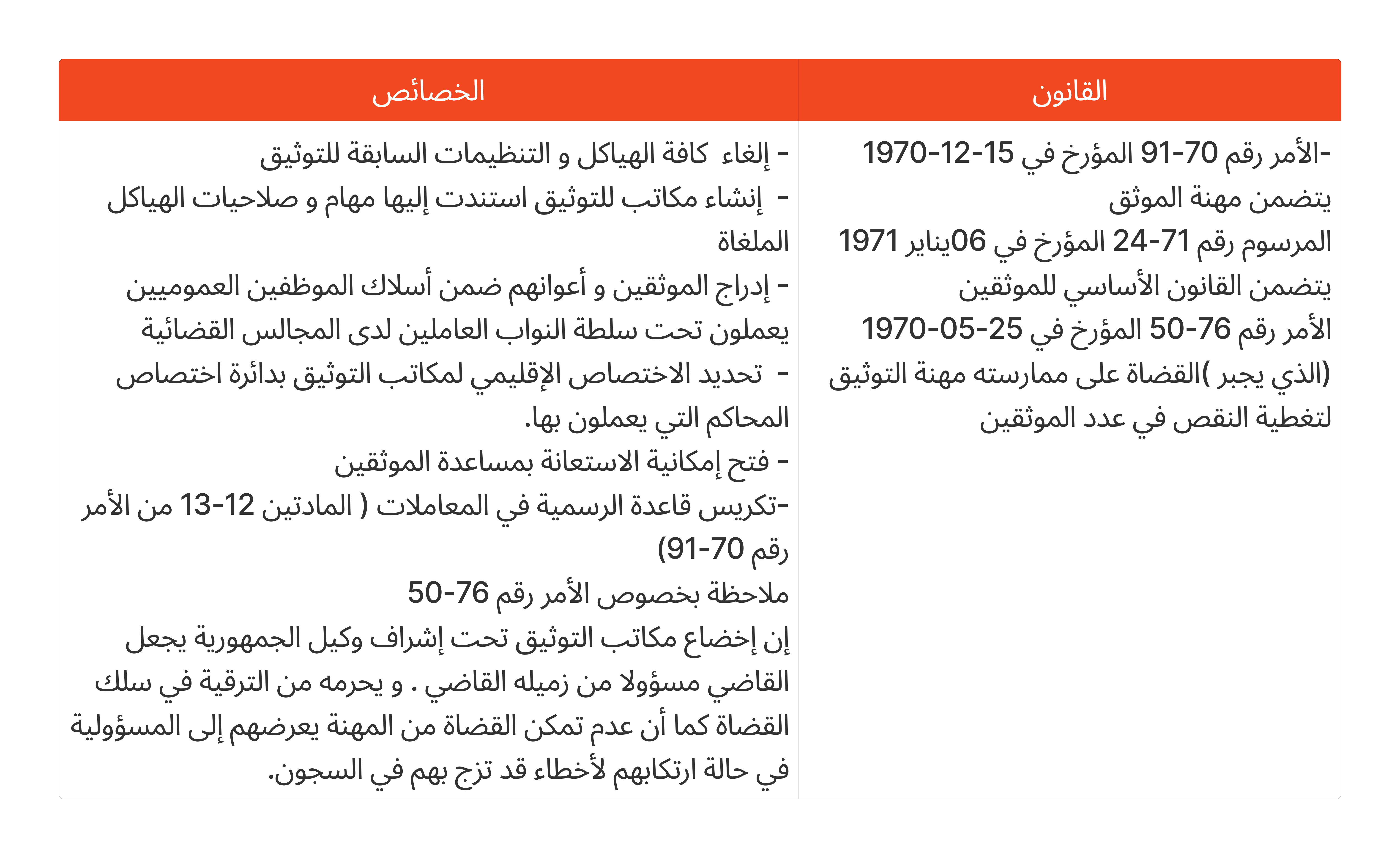 - الأمر رقم 70-91 المؤرخ في 15-12-1970 المتضمن تنظيم مهنة التوثيق ج ر عدد 107 لسنة 1970