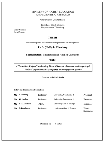 The cover page of a report holds significant importance, as it is the first visual element a reader encounters before delving into the document. Both its visual layout and written content must be carefully designed to create a strong first impression. The cover page should clearly and concisely include the title of the work, the author’s name, the supervisor and co-supervisor, the name of the academic institution, the submission date, and the members of the evaluation committee.